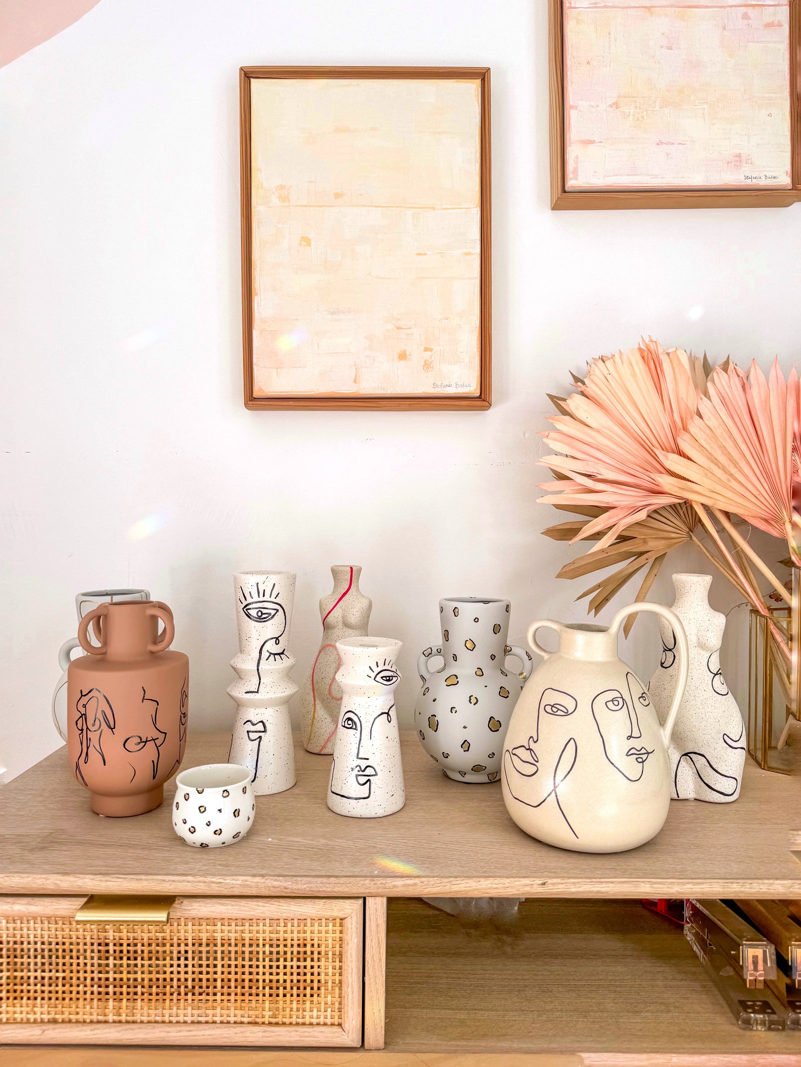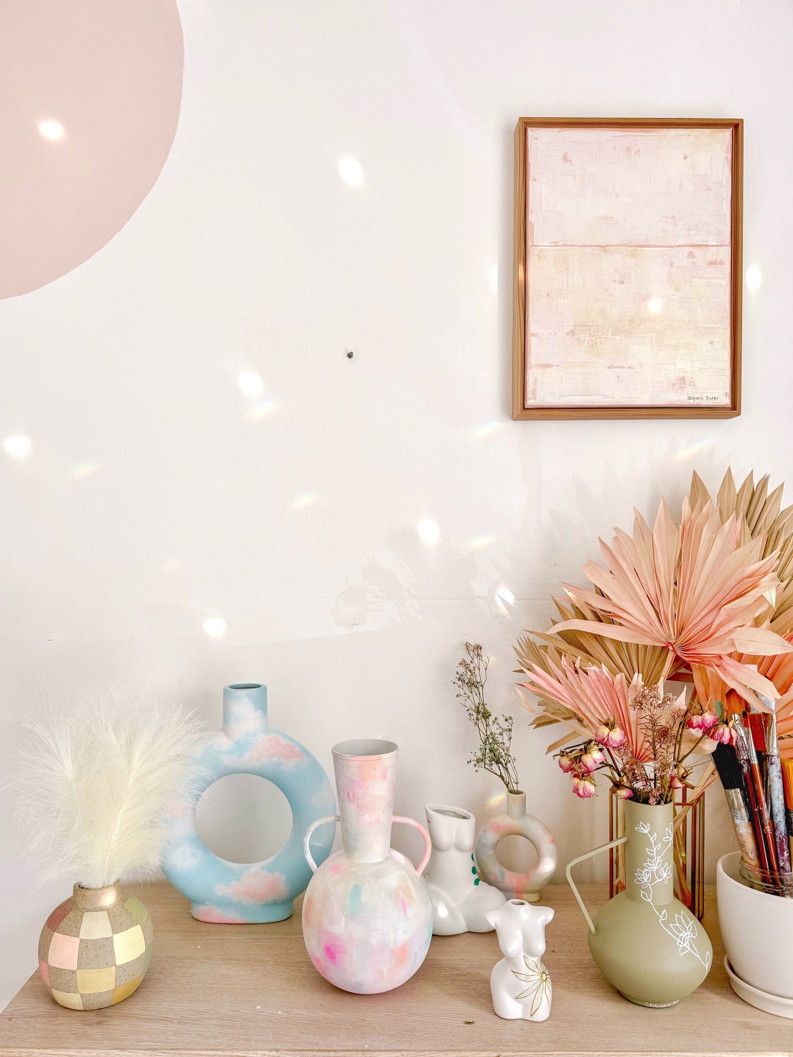 Collections of repurposed, one-of-a-kind, hand-painted vases and ceramics.