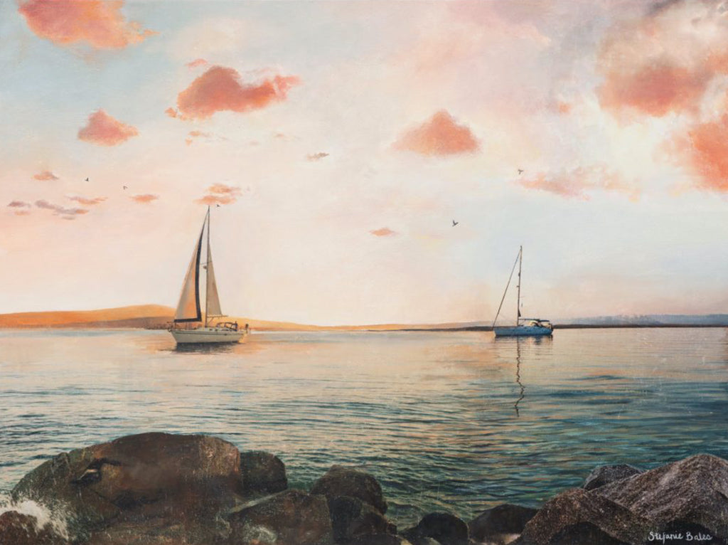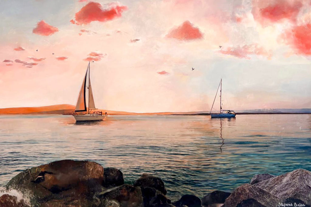 A series of coastal paintings with sailing, boating, yachting, and nautical themes.