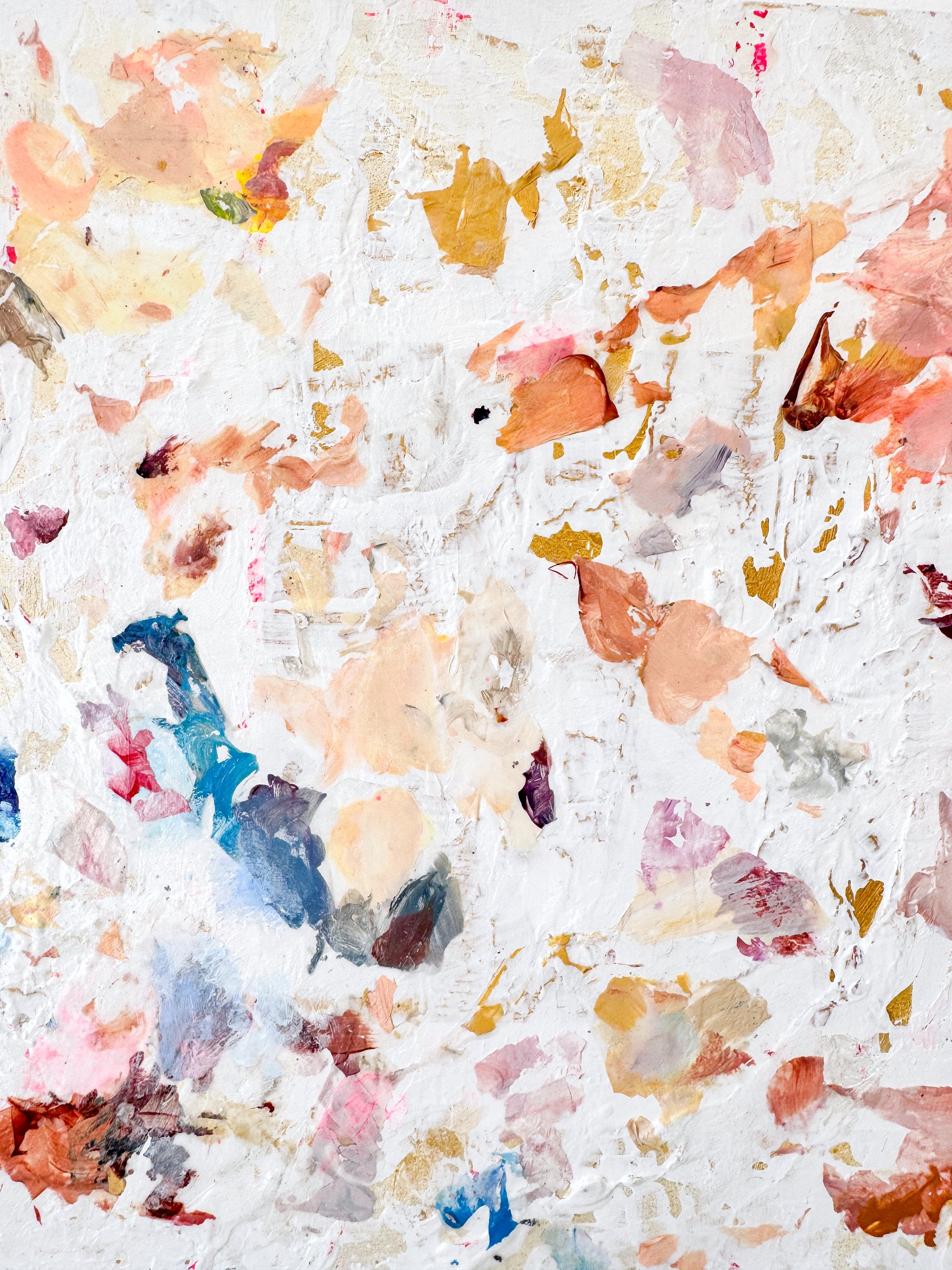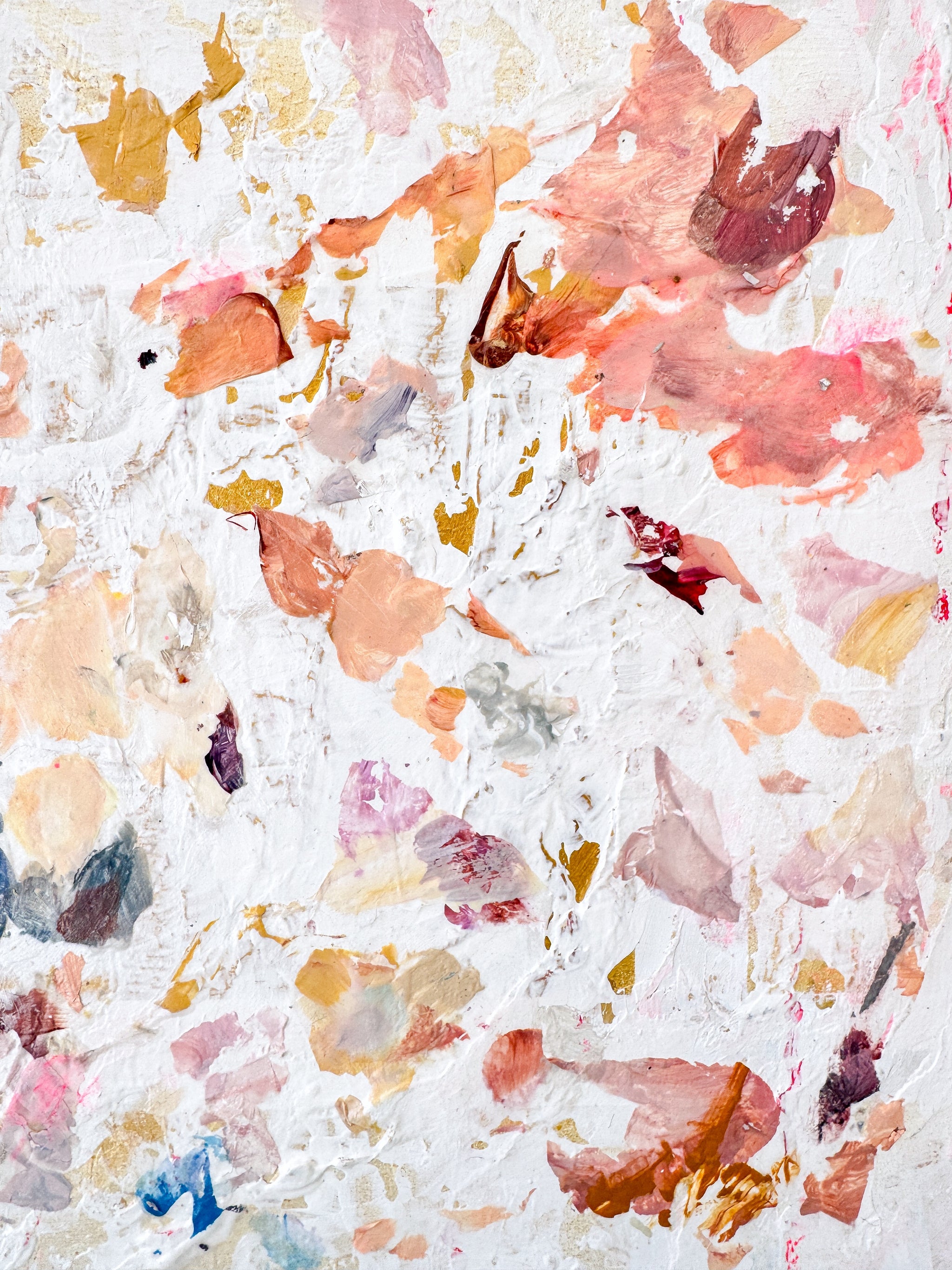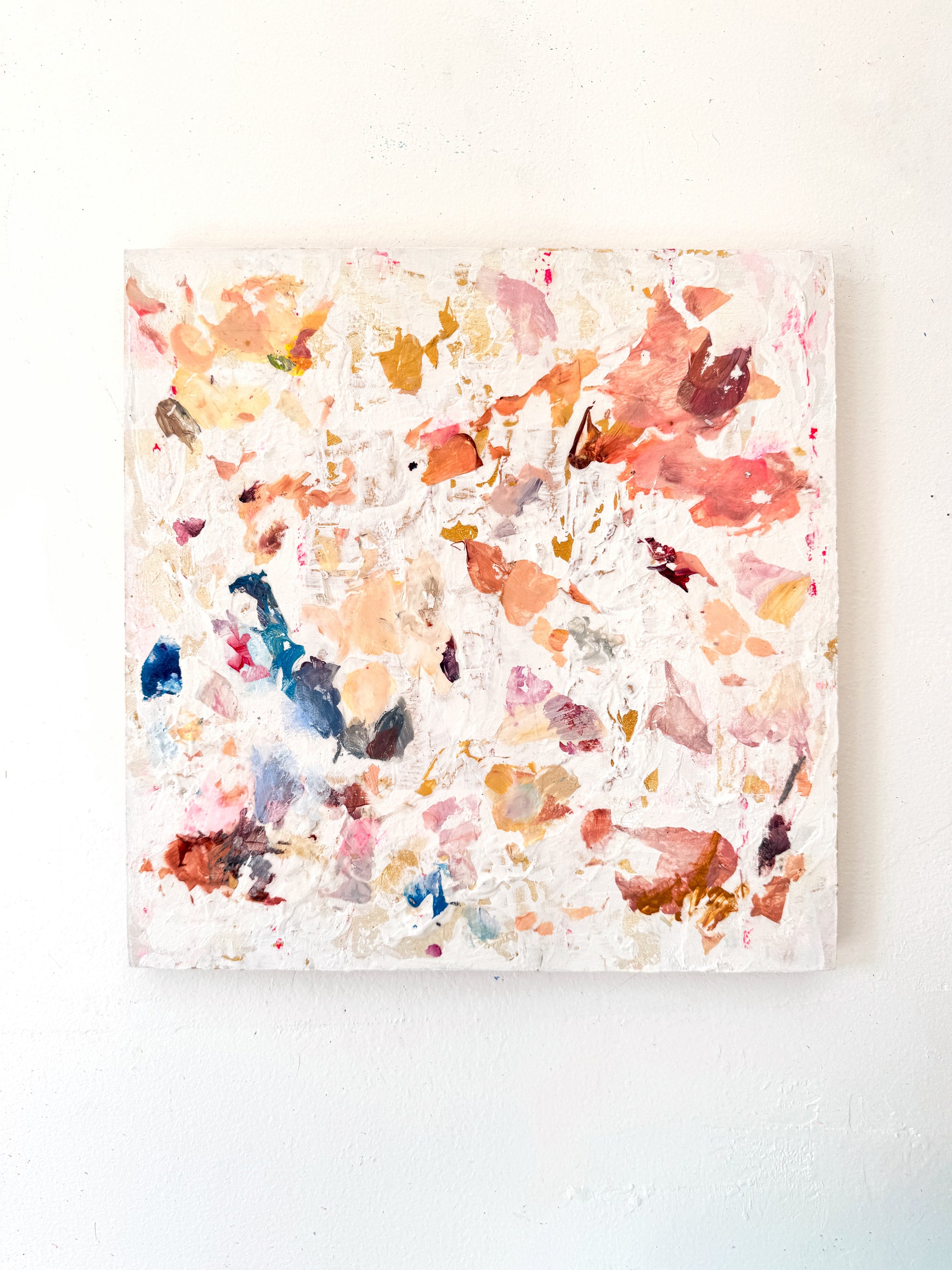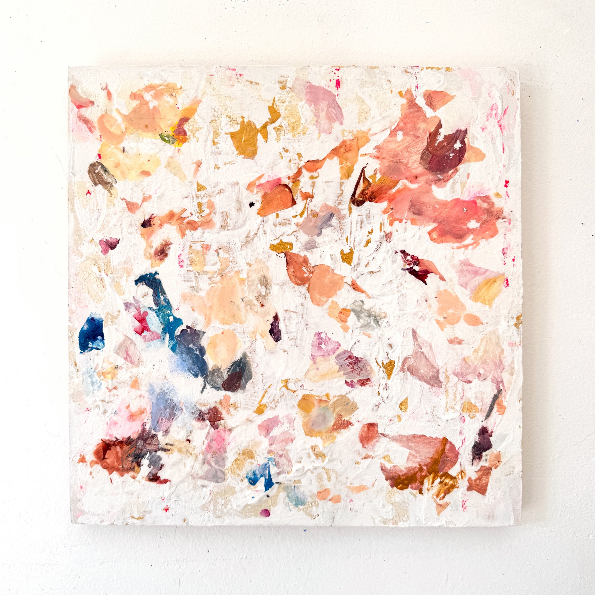 Acrylic, gold leaf, plaster on wood panel